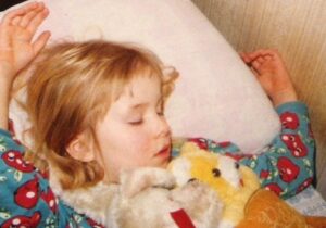 Mitä sanoisin pienelle itselleni, jos voisin Tässä kuvassa olen minä. Ah, miten rakastinkaan nukkumista.Näytän nukkuvani tosi levollisesti, turvassa. Tämä oli osa todellisuutta.Samaan aikaan isäni oli muuttanut pois kotoa. Vanhempani olivat eronneet. Tämä johtui isän juomisesta…